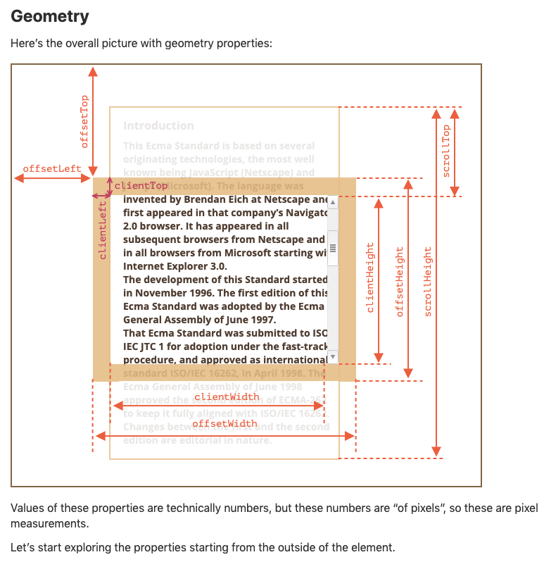 프로그래밍/HTML HTML, JS 무한 스크롤링 구현 by IJIJIJ 2020. 11. 17. document.body.scrollHeight document.body.offsetHeight document.documentElement.clientHeight document.documentElement.scrollHeight document.documentElement.offsetHeight https://javascript.info/size-and-scroll f 공유하기 게시글 관리 콕콕박스 저작자표시 (새창열림) '프로그래밍 > HTML' 카테고리의 다른 글 ejs 기본 문법 (1) 2020.10.30 관련글 ejs 기본 문법 댓글